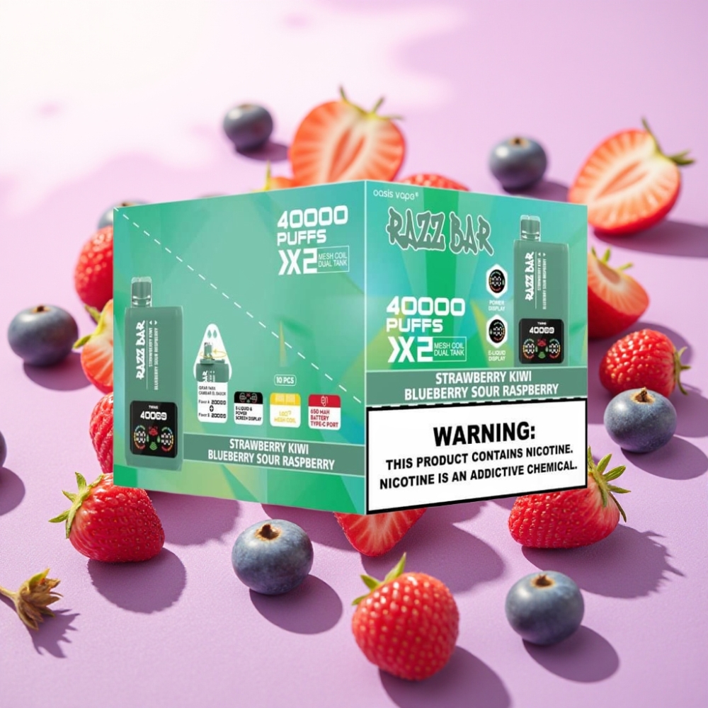 Razz Bar 40000 משיכות מסיכה כפולה 1.0Ω תצוגת מסך תות קיווי פטל חמוץ כחול