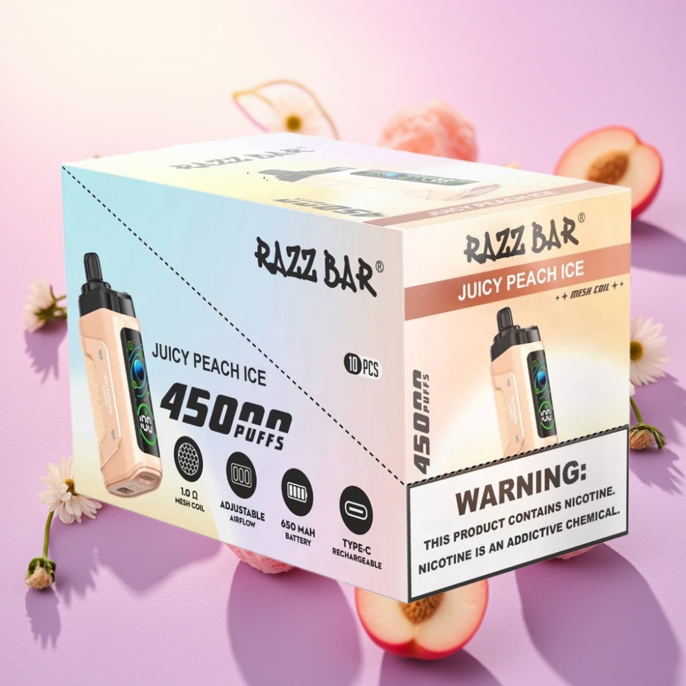Razz Bar 45000 שאיפות גליל חד פעמי אפרסק עסיסי קר