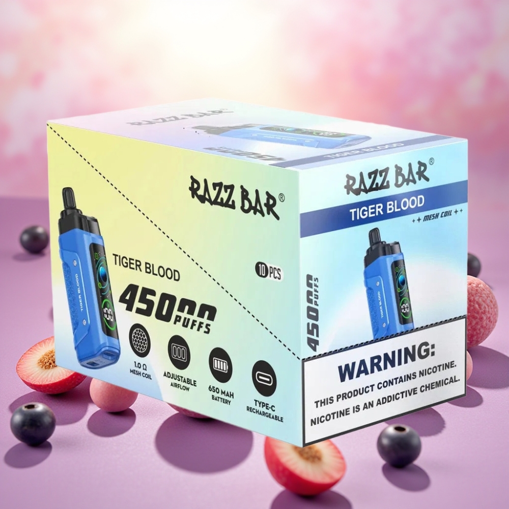 Razz Bar 45000 שאיפות מנגנון ונטילציה כוונון סוללת 650 מגה-אמפר טייגר בלד