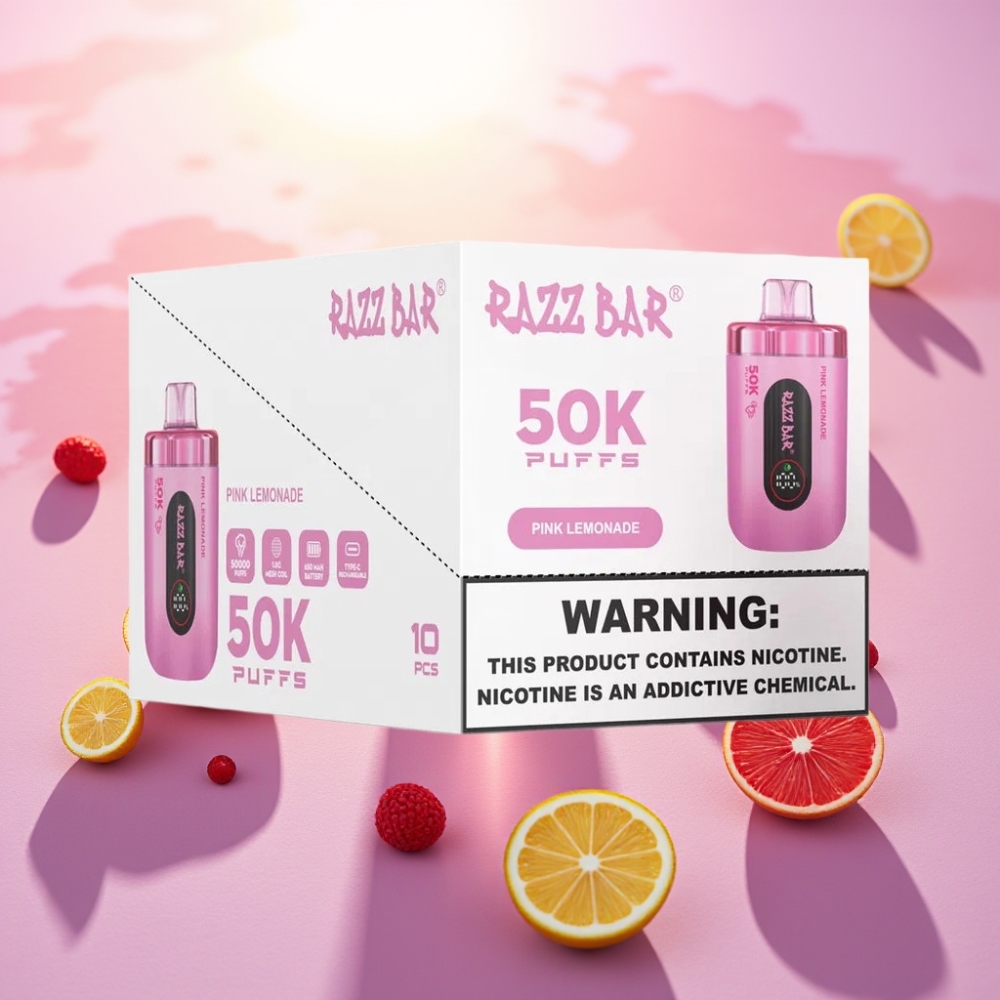 Razz Bar 50000 דיספוזבל וייפ פינק לימונדה עם סוללה 650 מא"ש וסליל 1.0 אוהם
