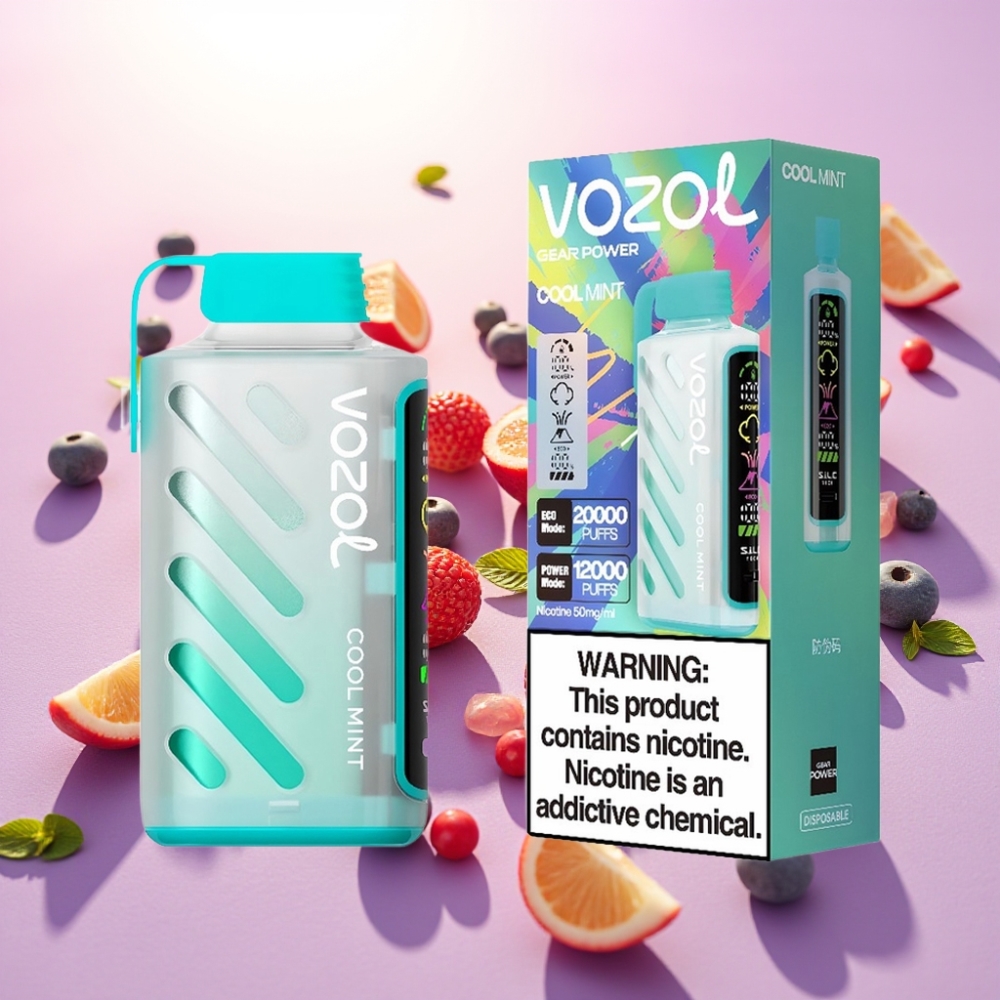 VOZOL Gear Power 20000 Puffs סוללה כפולה, 20mL, מנטה צונן