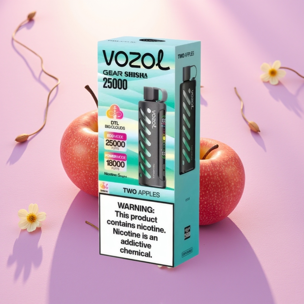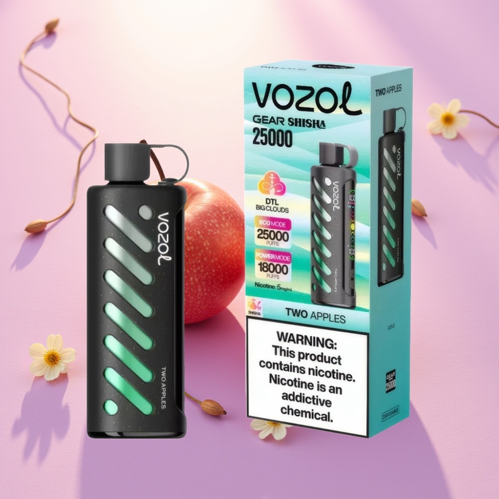 Vozol Gear Shisha 25000 - שני תפוחים, סוללה 1000mAh, מצבי Mesh כפול, טעמים 30